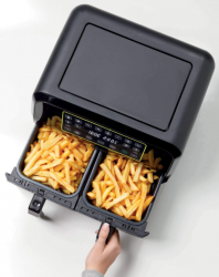 От рыбы до овощей, от чипсов до сухариков, для ужинов с семьей и друзьями - прибор удовлетворит любой вкус, приготовив разные блюда за один миг. Установите температуру и таймер для каждой корзины, и два блюда будут готовы в одно и то же время